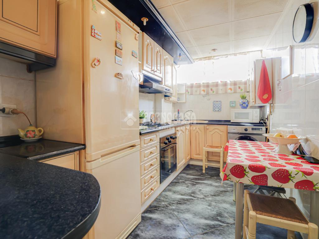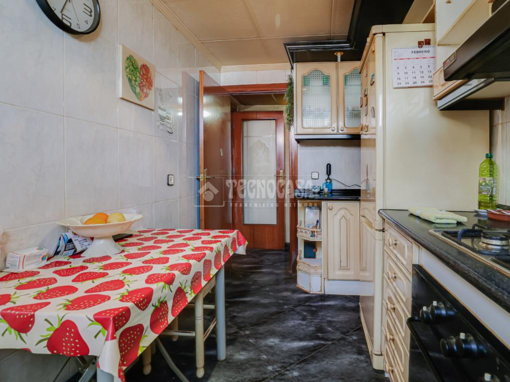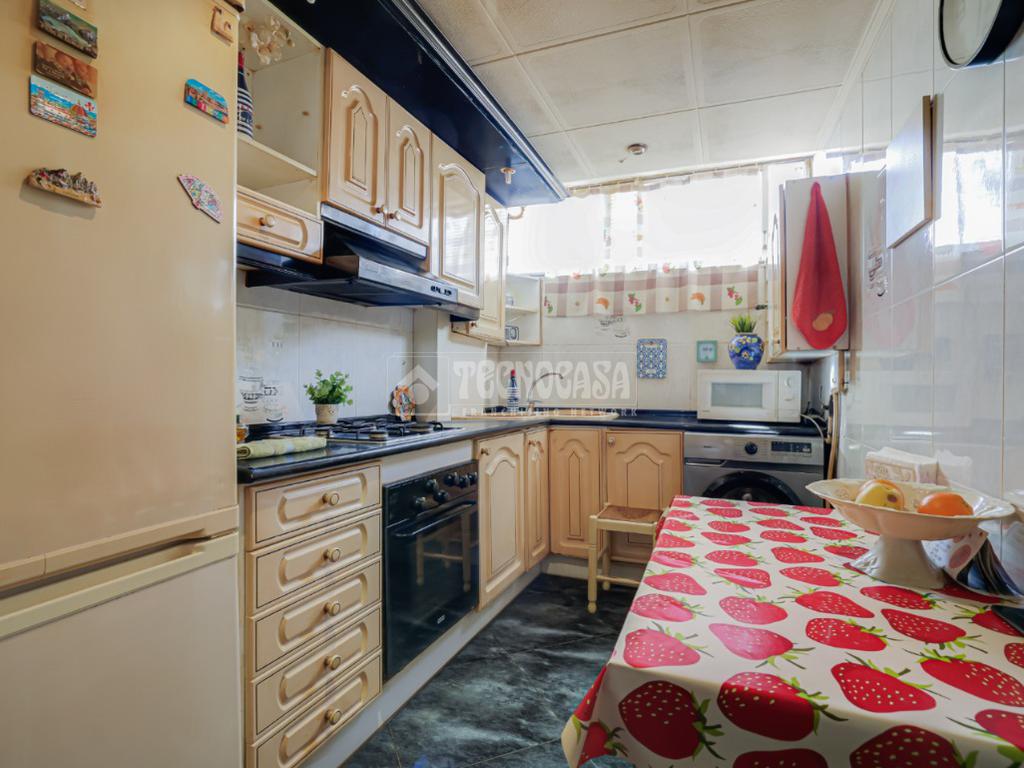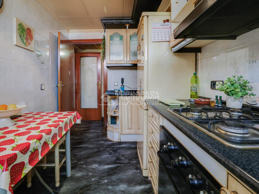 La cocina es independiente, práctica y funcional, con acceso a una galería que aporta un espacio extra muy útil, perfecto como zona de lavado o almacenamiento.