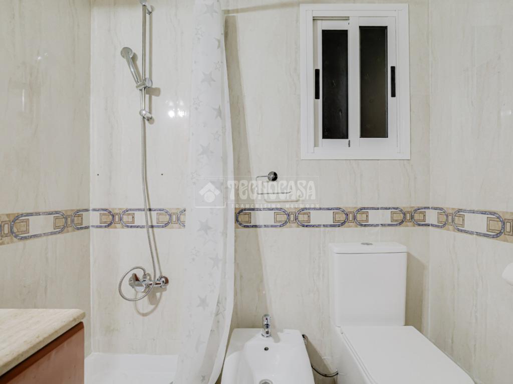 El baño completo con plato de ducha añade un toque práctico a la distribución optimizada de este hogar.